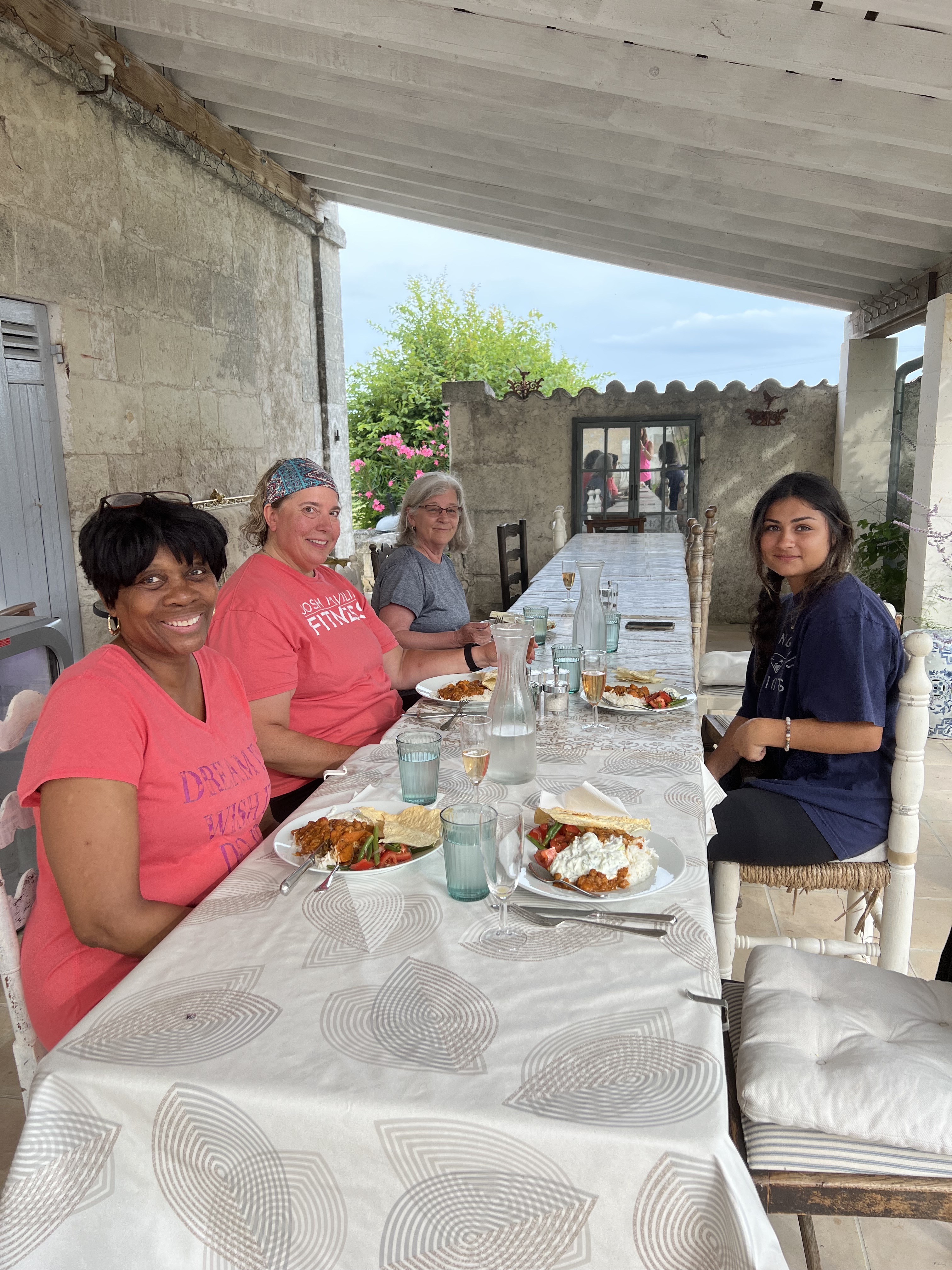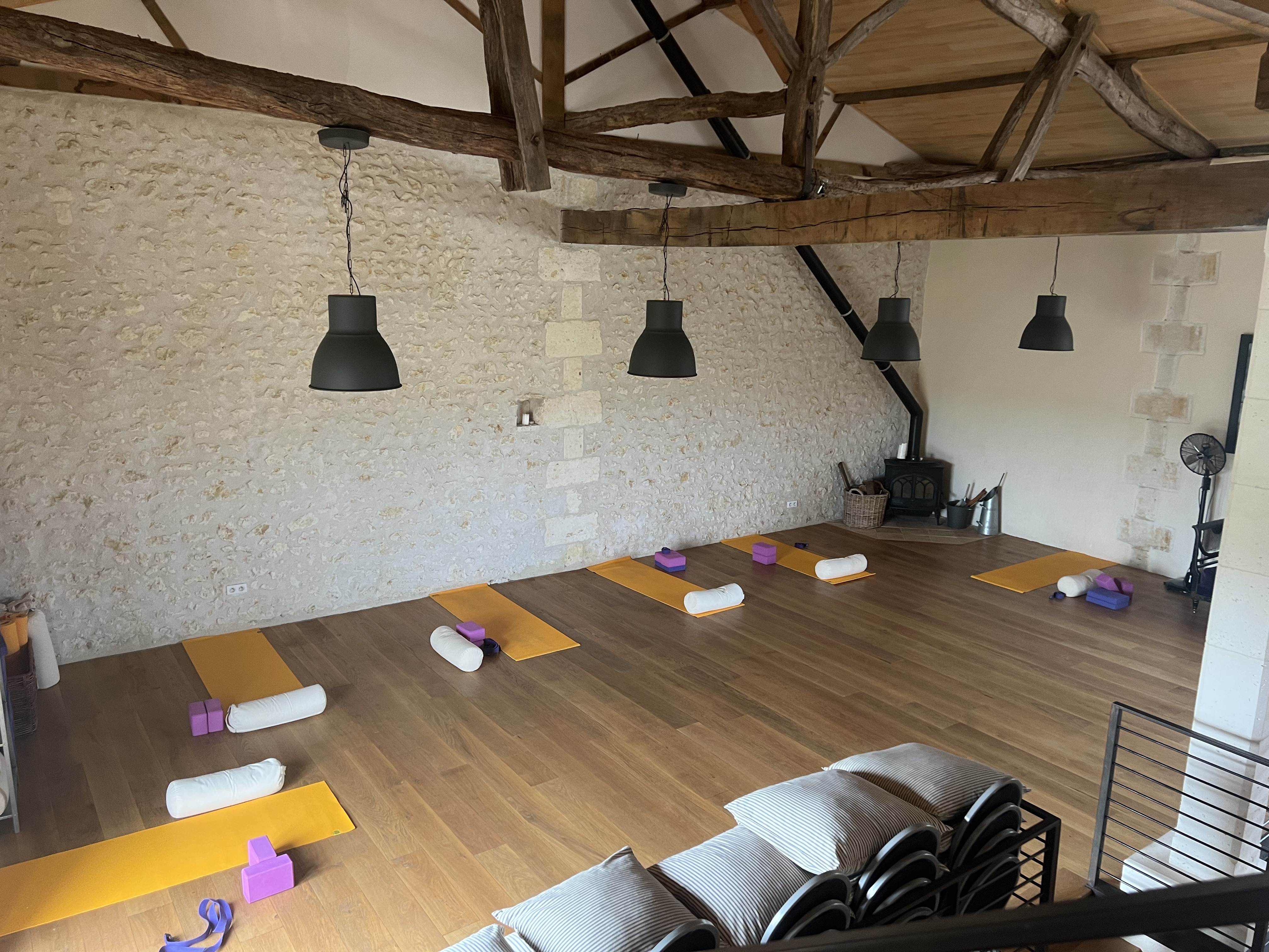J'ai organisé une retraite de yoga avec un petit groupe des États-Unis en juillet. C'était parfait! La salle de yoga avait de jolis accessoires et était calme et spacieuse avec de hauts plafonds et une belle lumière naturelle. Les chambres se trouvaient dans le même bâtiment que la salle de yoga (une grange fabuleusement rénovée) avec une kitchenette à utiliser. Les chambres étaient toutes joliment décorées et dotées d'une salle de bain privée. Le centre lui-même est un peu éloigné (nous avons adoré ça) mais à 20 minutes à pied d'un village voisin. Entouré de magnifiques champs de tournesols et de vignes. Une véritable image de la campagne française ! NOUS avons adoré nous détendre au bord de la piscine et nous promener dans les villages locaux et à travers les champs de tournesols. Nous avons également fait des excursions d'une journée à Saint-Émilion et à Auburterre, de nombreux magasins, une grande église souterraine historique, une dégustation de vin et une baignade dans la rivière ! Emma a fourni des informations et le transport pour toutes les excursions. Elle a également fait venir une masseuse très douée pour nous offrir de merveilleux massages. Les repas étaient préparés par des chefs locaux et étaient délicieux. Nous avons passé un merveilleux séjour. Emma et Matthew sont des hôtes géniaux et nous espérons tous revenir un jour. Je recommande vivement de participer à l'une de leurs nombreuses retraites ou d'en organiser une vous-même !